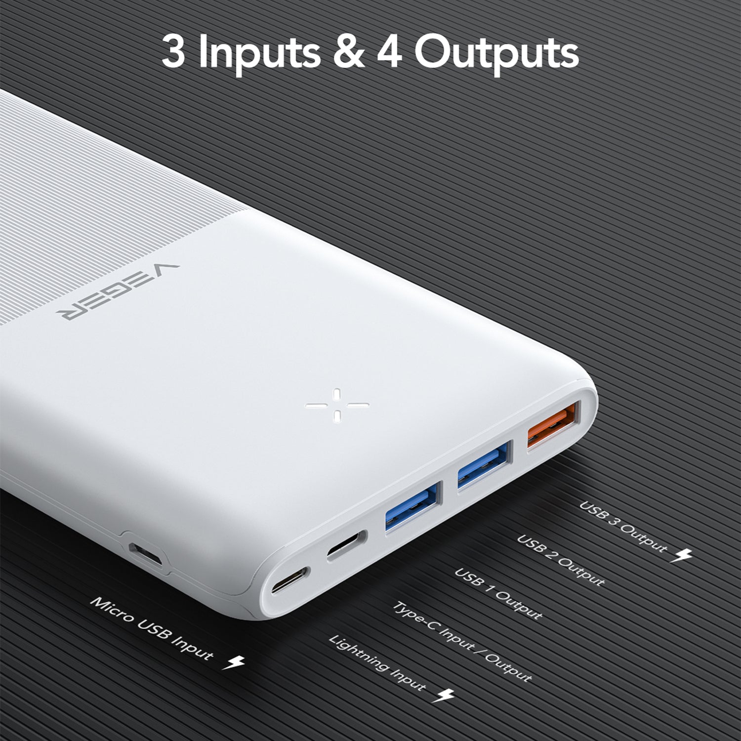 Veger S22 Ultra Slim 20W Fast Charging Power Bank White - 20000mAh