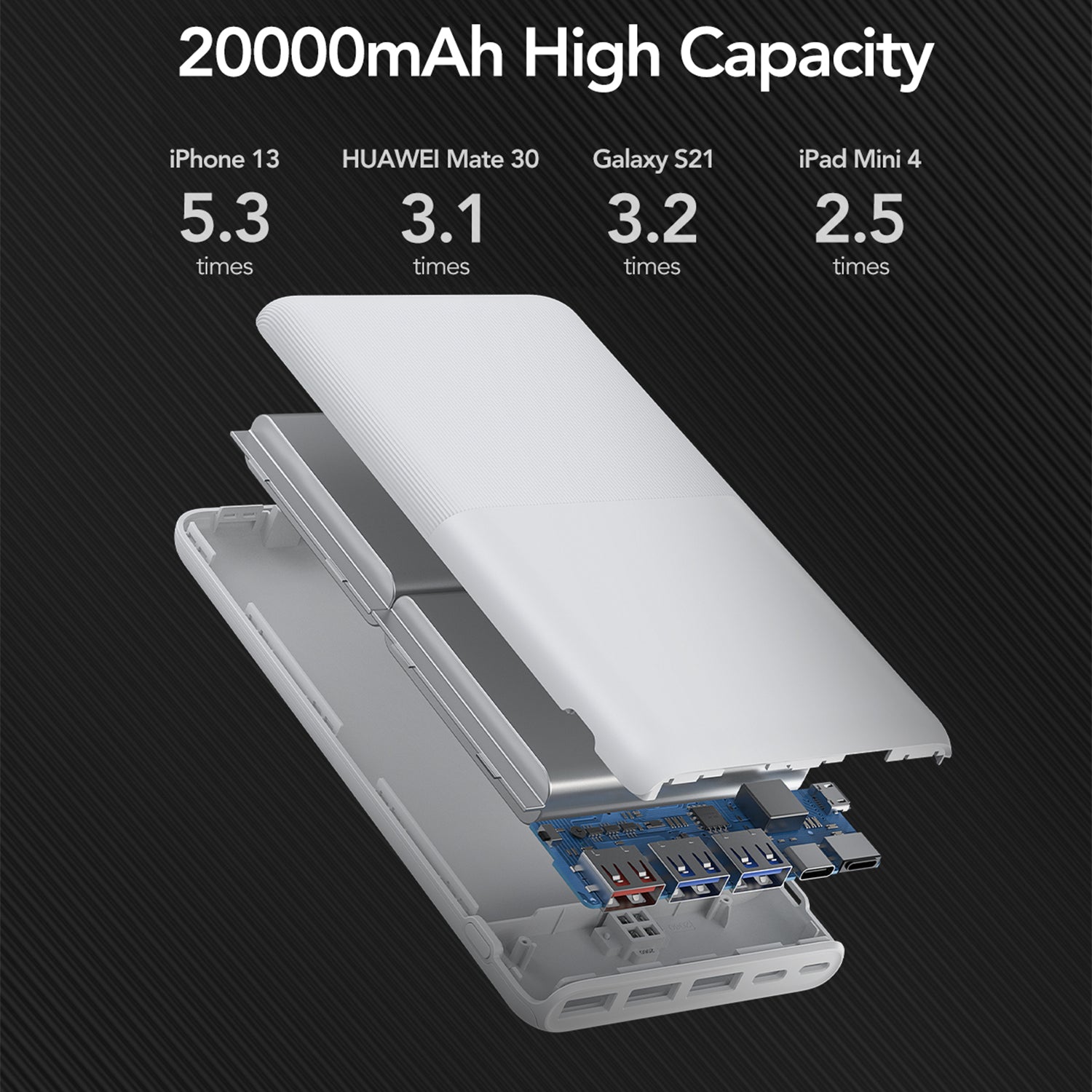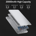 Tech Veger S22 Ultra Slim 20W Fast Charging Power Bank White - 20000mAh