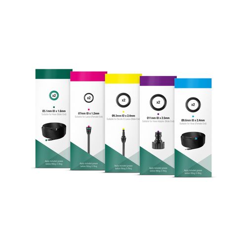 Gerni 10 Piece O-Ring Kit contains 2 complete sets to replace worn O-Rings. Suitable for use with all Gerni Machines. Includes grease lubricant to assist with fitment.