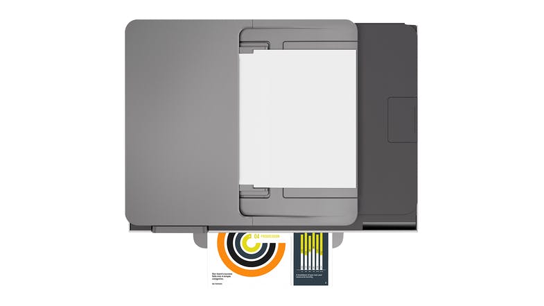 - For total ease of use, this OfficeJet Pro Printer comes with a touchscreen, automatic document feeder, and two-sided printing feature.