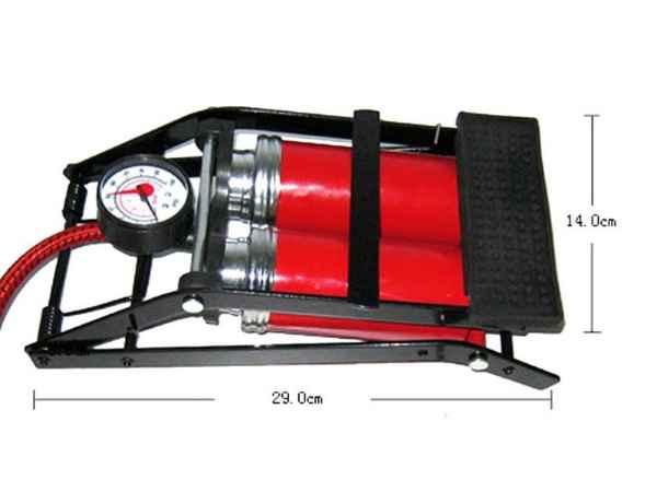This multi-purpose foot pump with double barrel design, large foot pedal area and air pressure gauge, it is very easy to use, just step on the lever of the floor pump to start the flow of air!