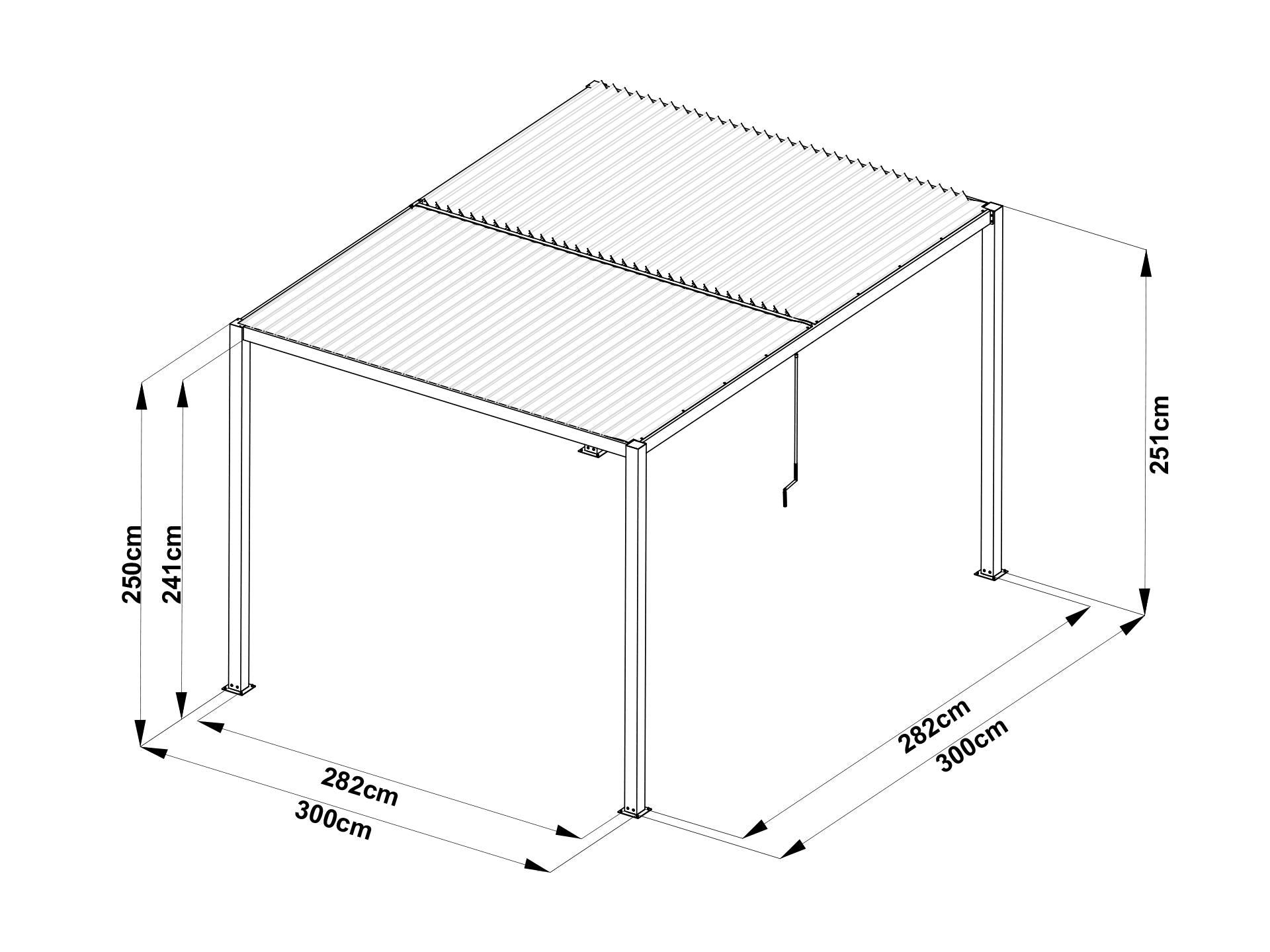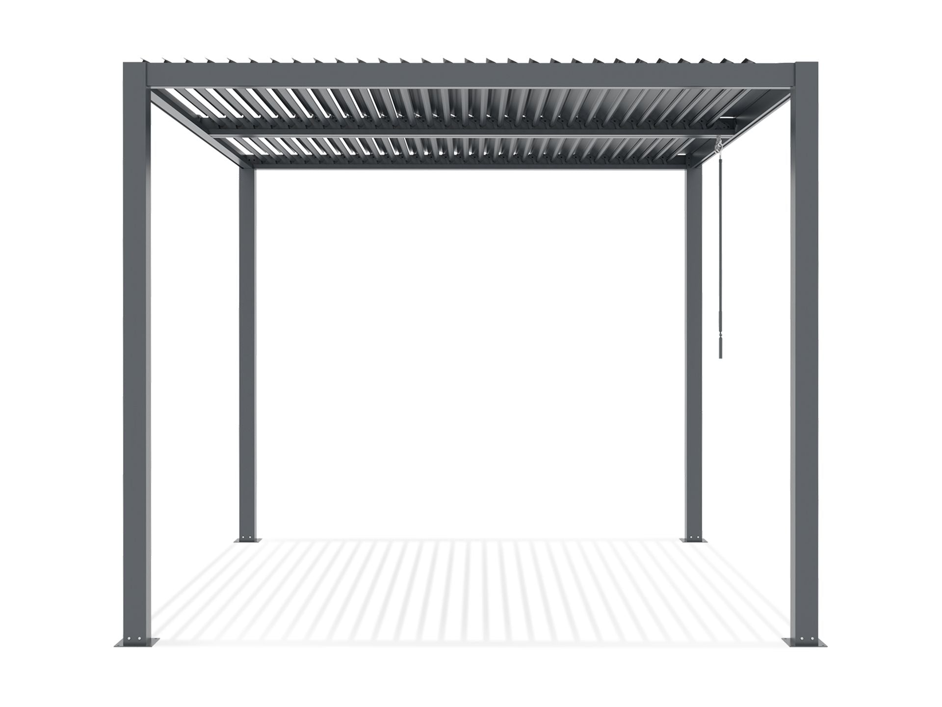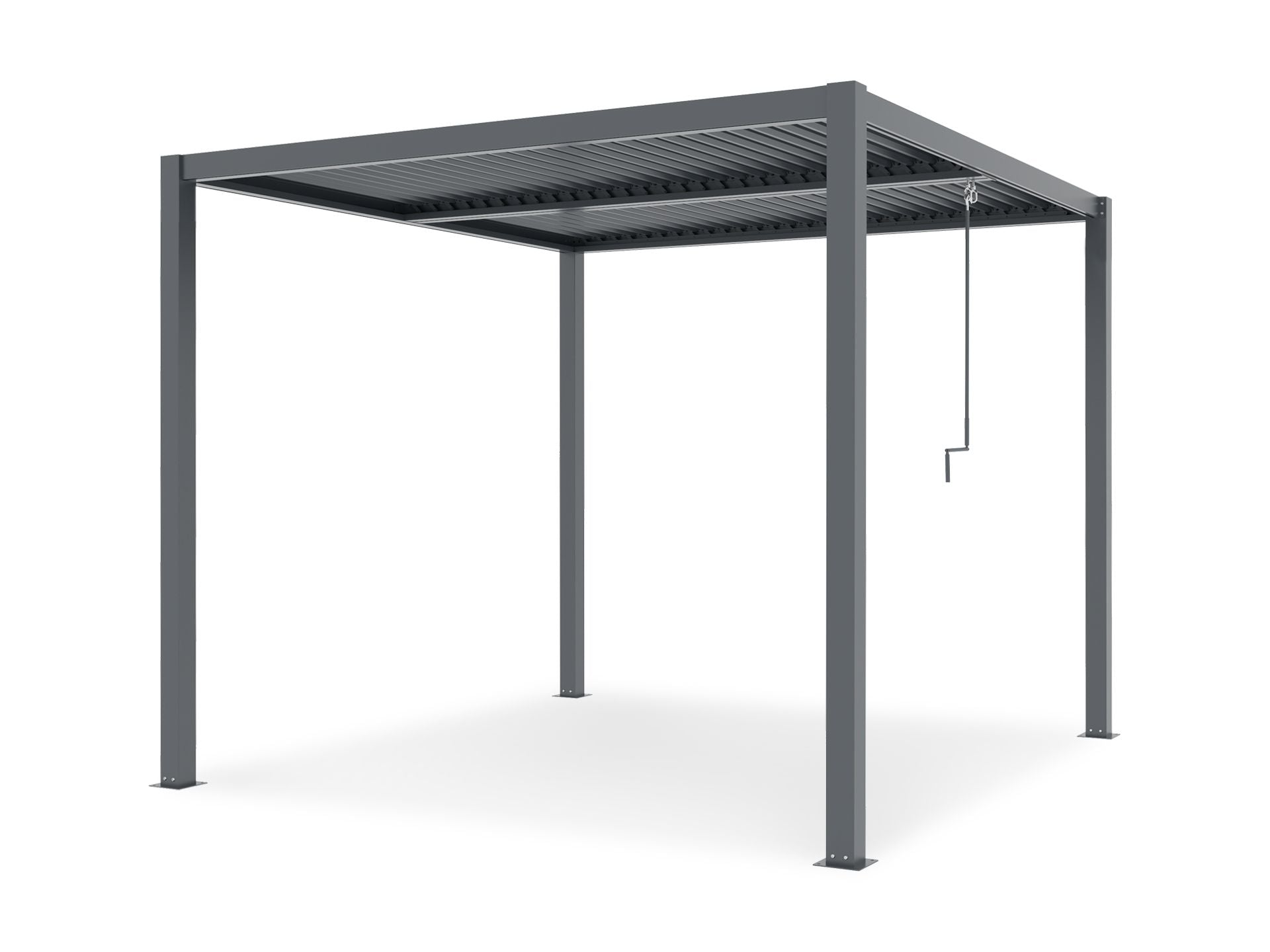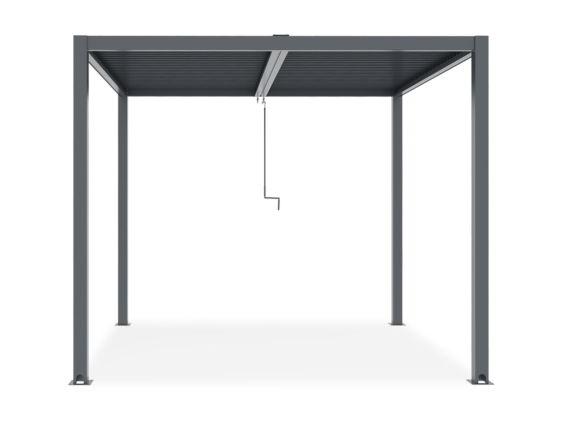 Designed with simplicity in mind, our bioclimatic pergola features a motor-free system operated by a single manual handle. This allows you to effortlessly open and close the two separate roof sections, offering the versatility to enjoy one section open to soak up the sun while keeping the other closed for shade. Elevate your outdoor living experience with the convenience and elegance offered by our bioclimatic pergola.
