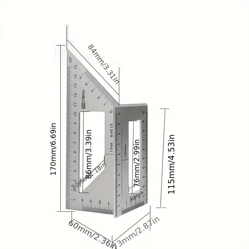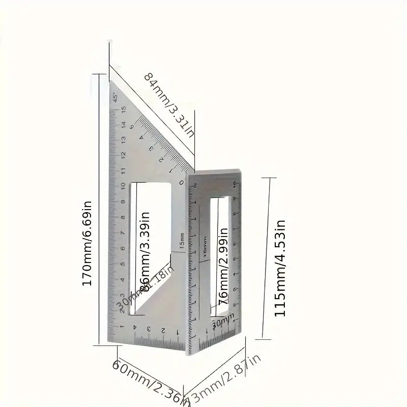 1pc, 45° 90° Degree Aluminum Alloy Angle Ruler Square Multifunction Rule Gauge Rule Woodworking Tool Professional Measuing Ruler