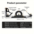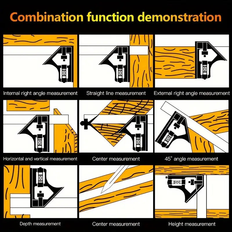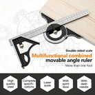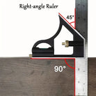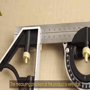 This multifunctional movable square is suitable for measuring angle, length, measuring circle center, standard 45 degree angle, etc.