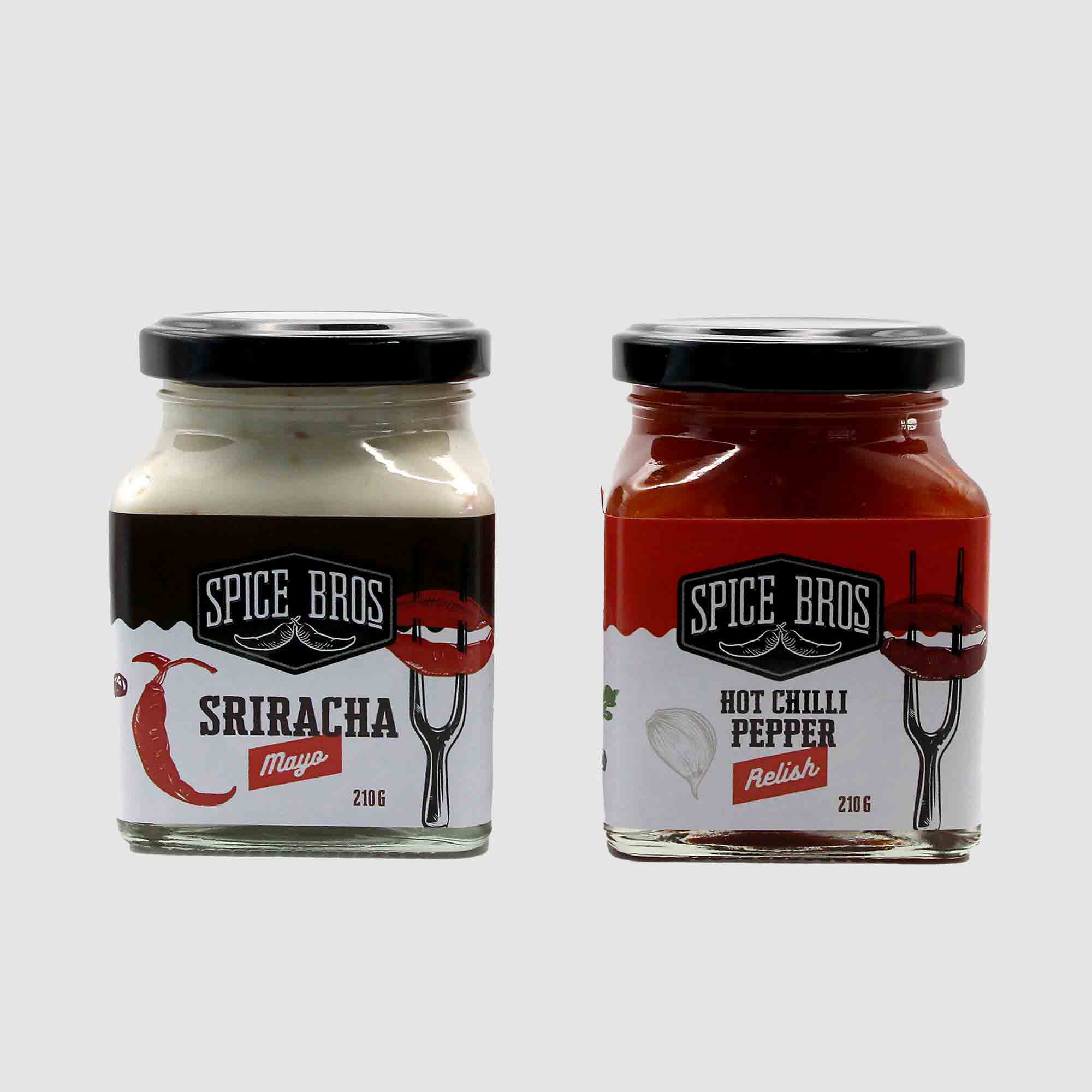 The Spice Bros Mayo & Relish gift pack features 2 delicious flavours - spicy siracha mayo 210ml & the new Hot Pepper Relish 210ml.