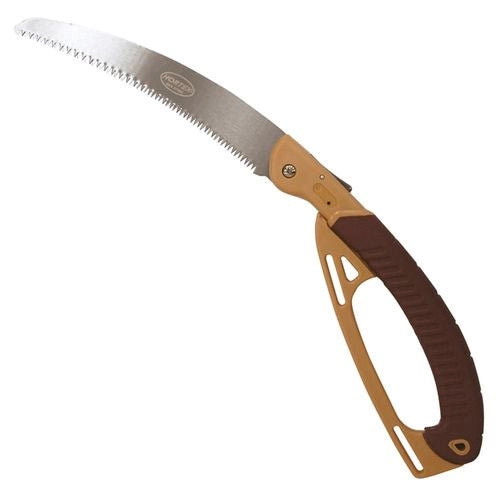 The Hortex 330mm Heavy Duty Folding Pruning Saw features triple teeth cutting action blade, an ABS plastic handle with a soft contoured grip and a safety locking latch.