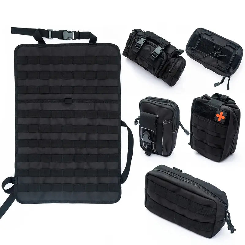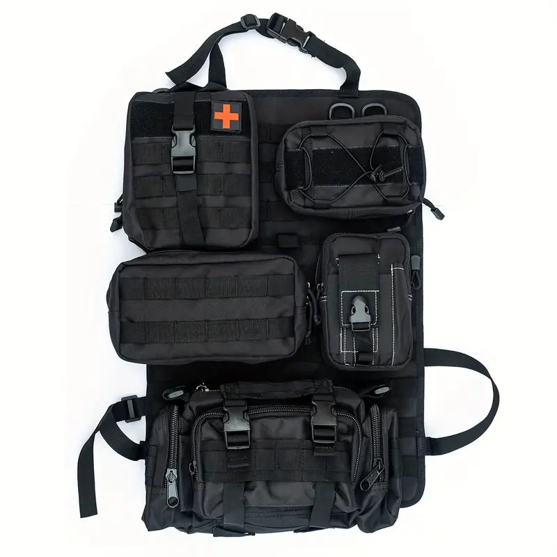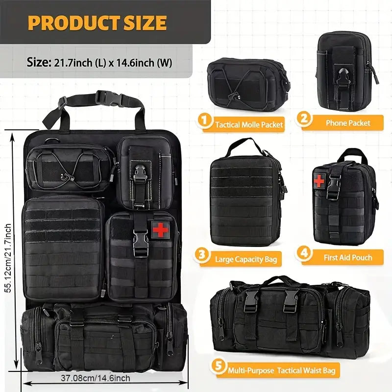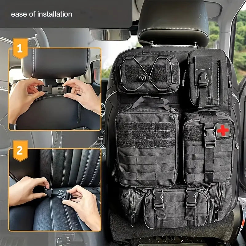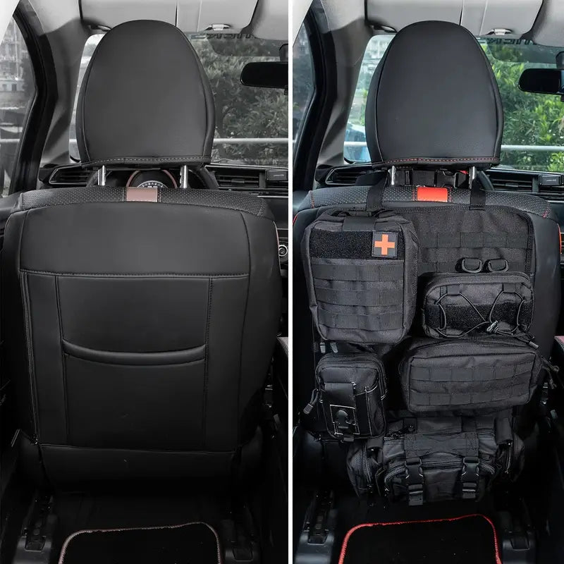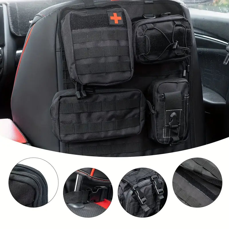 Universal Vehicle Seat Back Organizer With Detachable Molle Pouch,