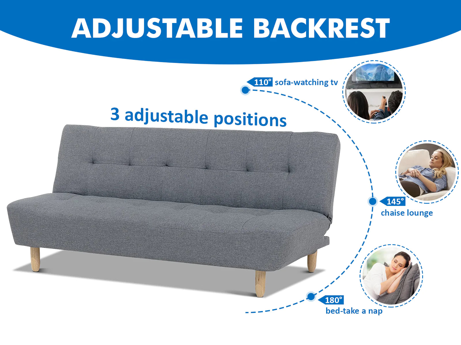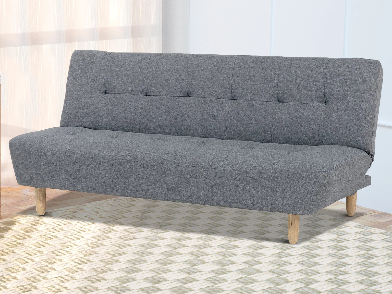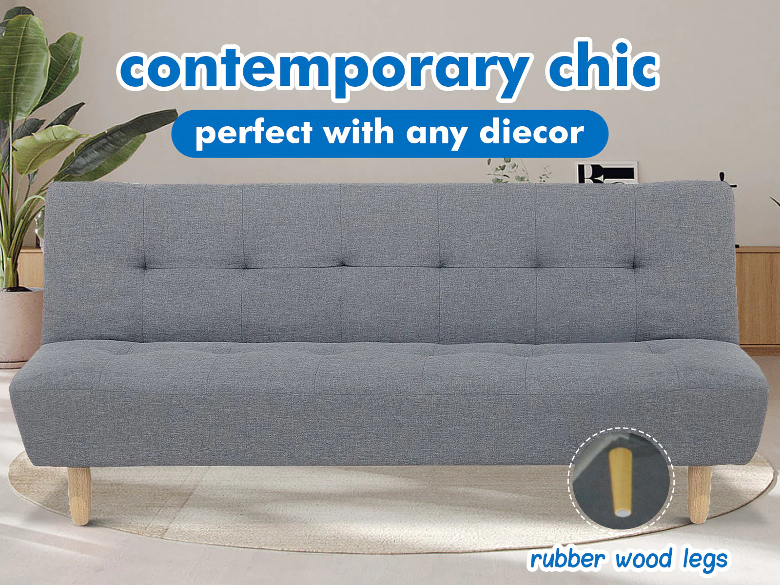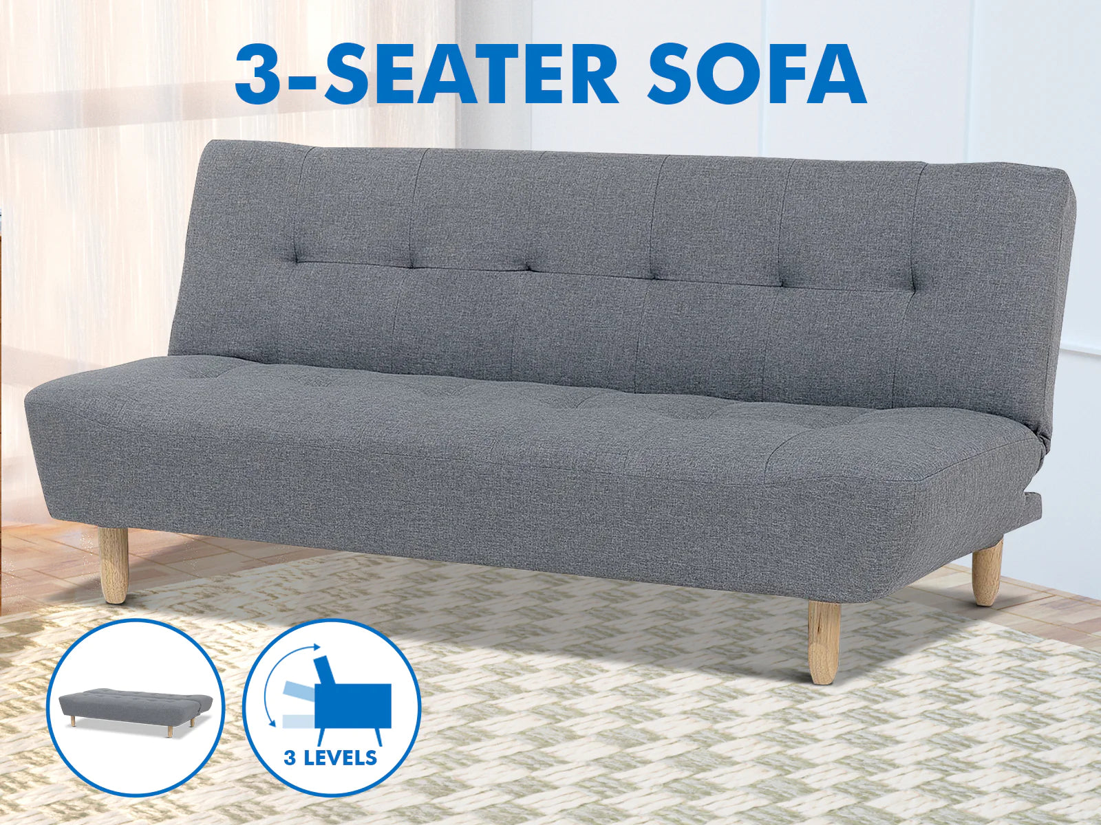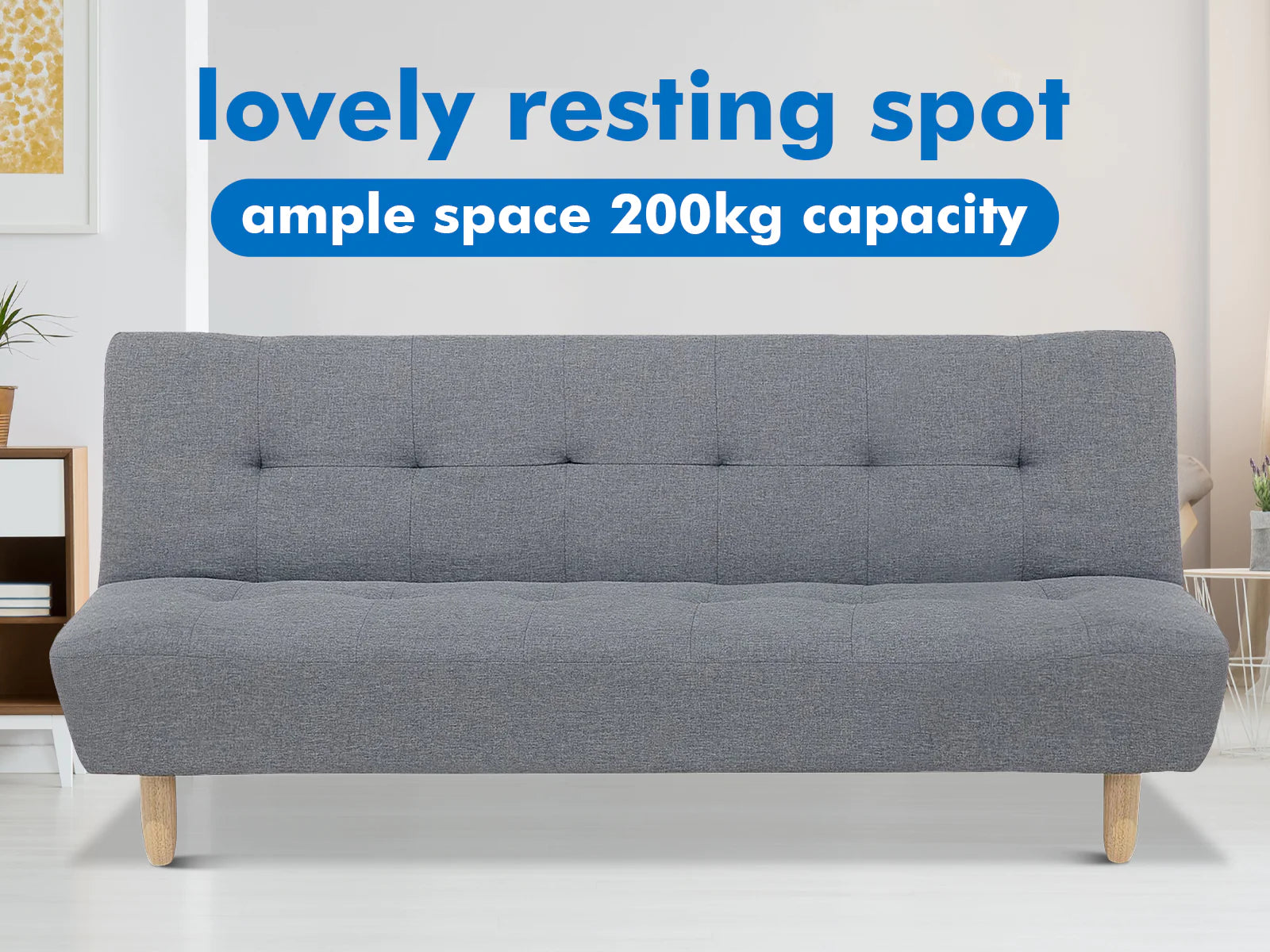 A functional 3-seater sofa featuring a gently curved silhouette and rubberwood tapered legs. Constructed with a reclining feature that allows you to easily turn it into a single bed.