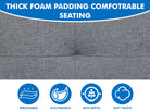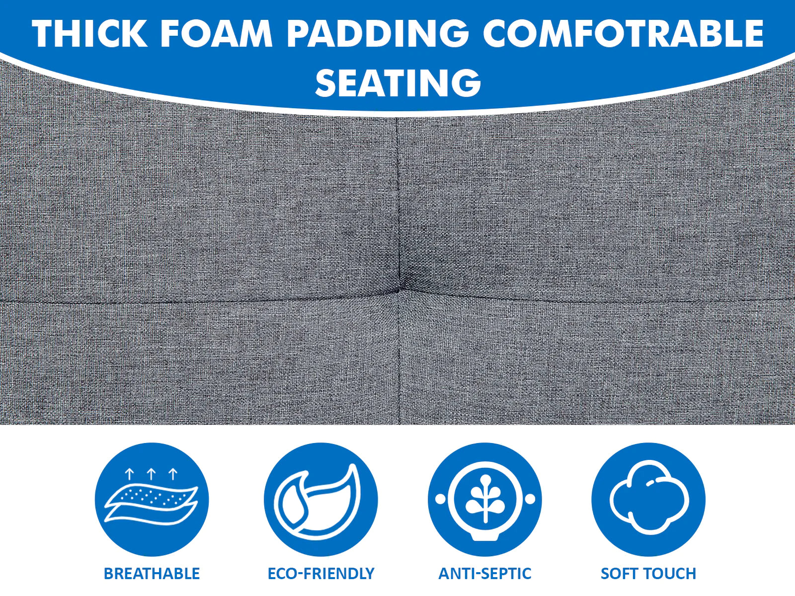 The thickly padded seat is tailored in grey soft-to-the-touch fabric upholstery that boasts decorative stitching. The stability of the product is ensured with durable rubberwood legs.