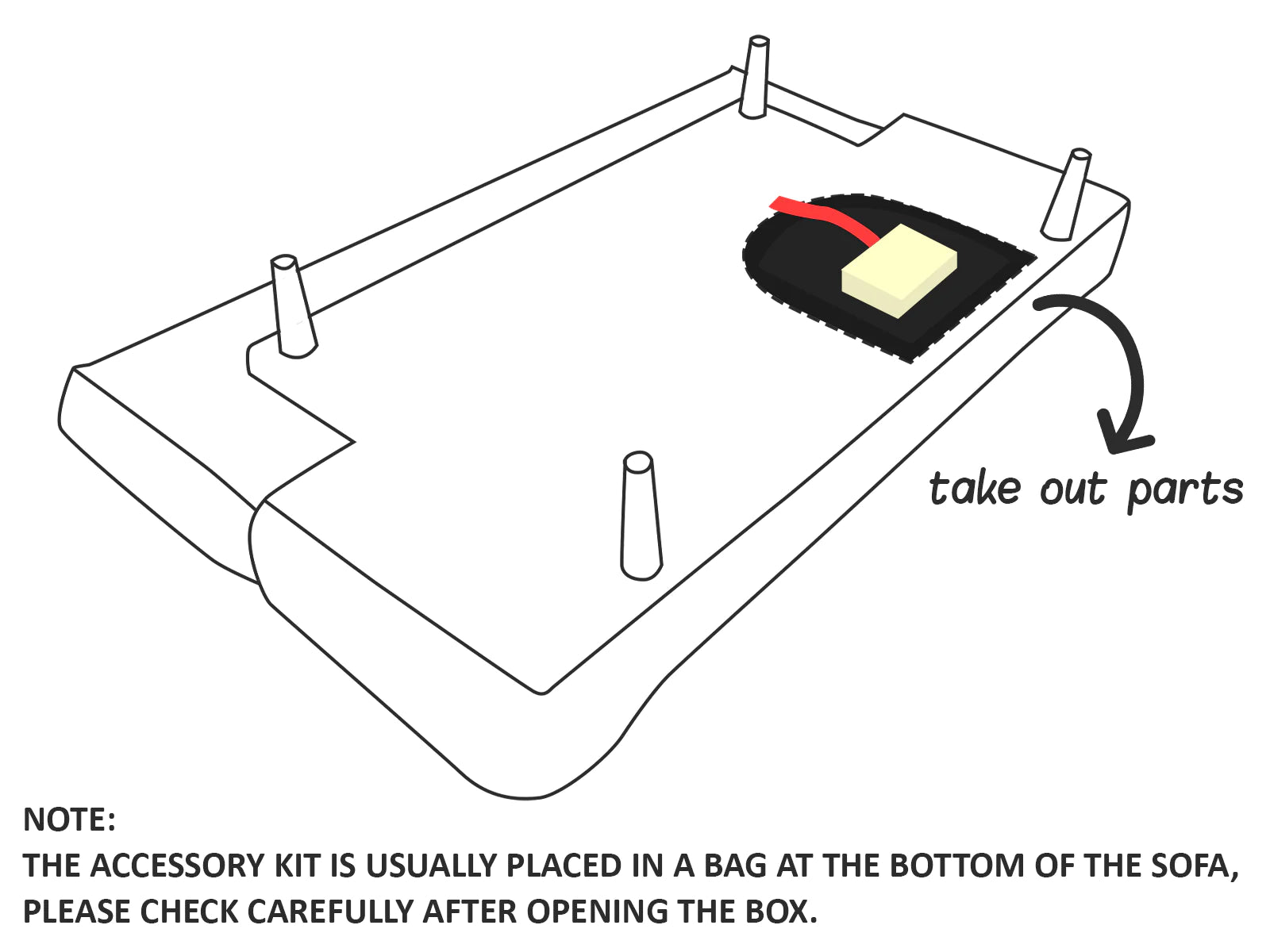 The accessory kit is usually placed in a bag at the bottom of the sofa,
