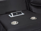 The corner recliner sofa features a console with a storage compartment and dual built-in cup holders for added convenience, also the concealed reading lights provide more light to create a cosy ambiance for reading or movie nights. Enhancing its functionality, one of the armless chair backrest can be dropped down as a table which is equipped with a electric outlet, dual USB ports and additional cup holders.