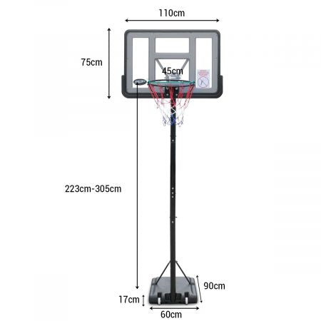 Sports 2.23-3.05m Large Portable Basketball Hoop Stand System Quick Height Adjustable