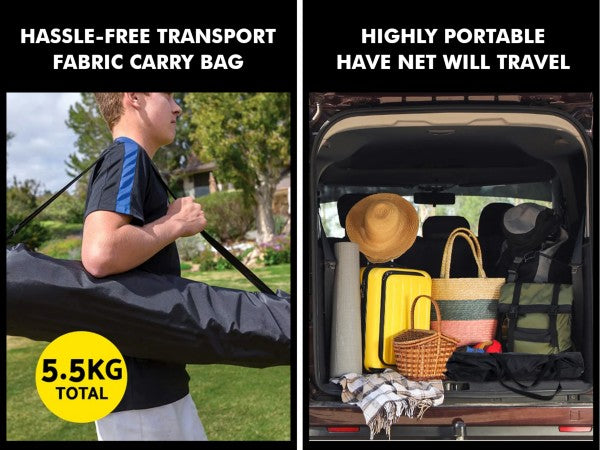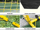 The frame itself is made with steel for extra durability. Plus, the four ground stakes ensure that the entire ensemble stays firmly in place with robust play. Not least, you can carry the goal easily to any location for a game with the bonus carry bag.