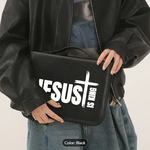 A Stylish And Simple Bible Case with a Minimalist Cross Pattern, Perfect for Everyday Use And Offering Ample Storage Space.