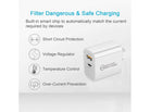 With the intelligent chip inside, the PD wall charger matches the current as your device's need automatically. Over-current, over-voltage and short-circuit protection effectively protect your devices from damage and ensure the safer charging overnight.
