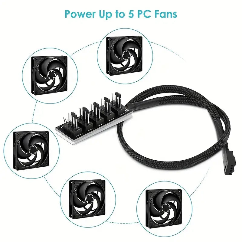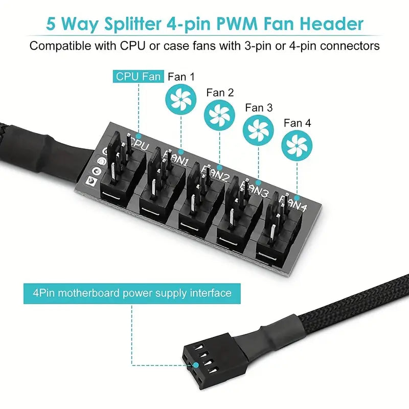 Tech 4-Pin PWM PC Fan Hub Power Supply Cable 1 To 5 Way Splitter