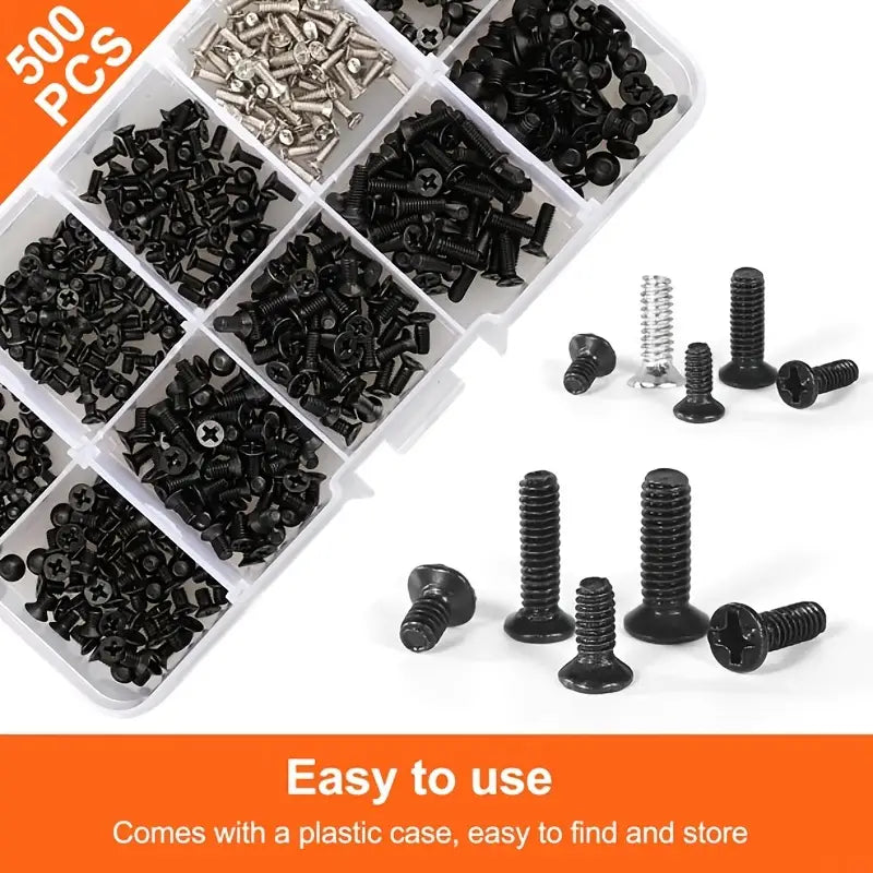 Tech 500pcs Black Nickel Plated Carton Steel Laptop Notebook Computer Screw Kit Set