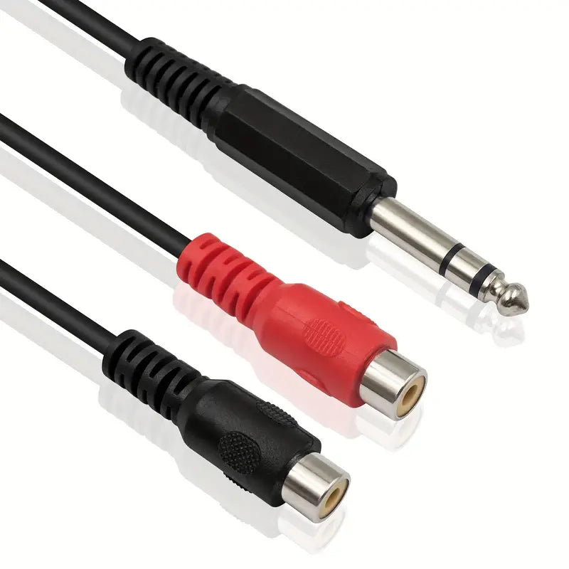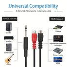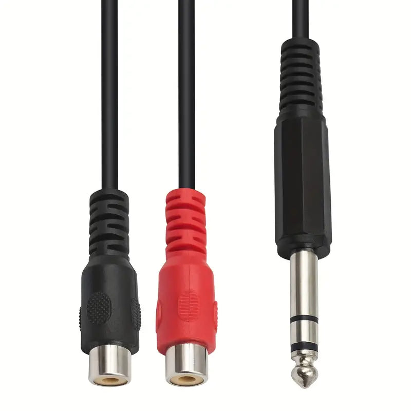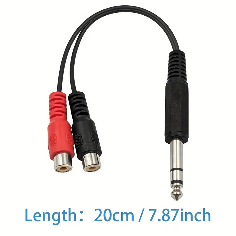 6.35mm 1/4 Inch TRS Stereo Jack Male To 2 RCA Female Plug Y Splitter Adapter Cable, 6.35mm To RCA Cable 20cm/8inch (6.35M-2RCAFM
