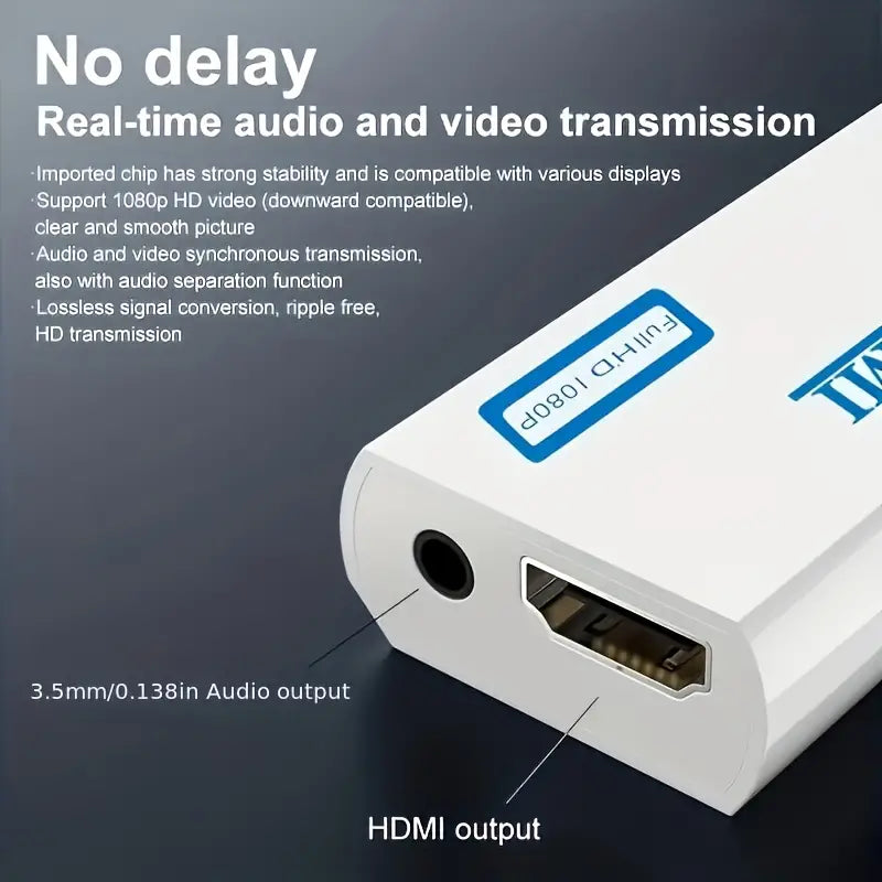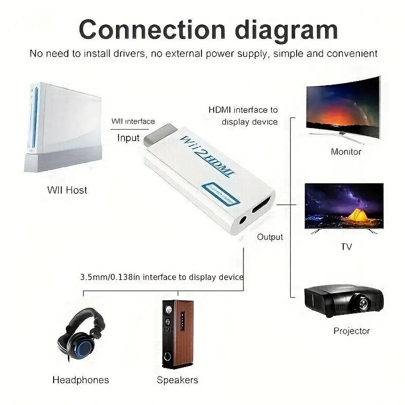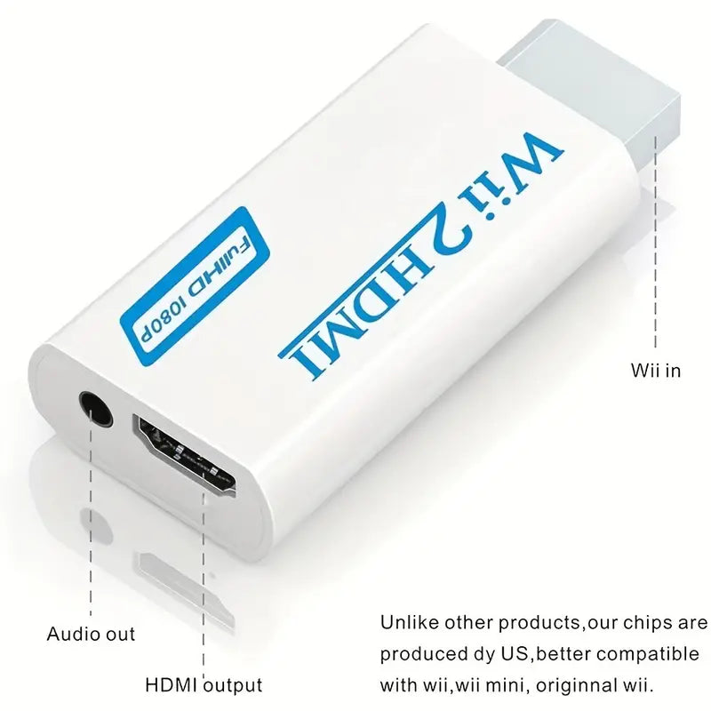 Wii To Converter 1080P For Full HD Device, Wii Adapter With 3.5mm Audio Jack & Output Compatible With Nintendo Wii, Wii U, HDTV, Monitor-Supports All Wii Display.