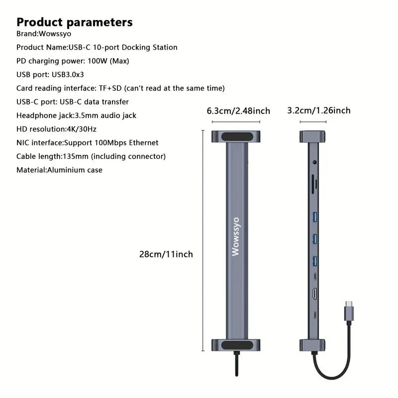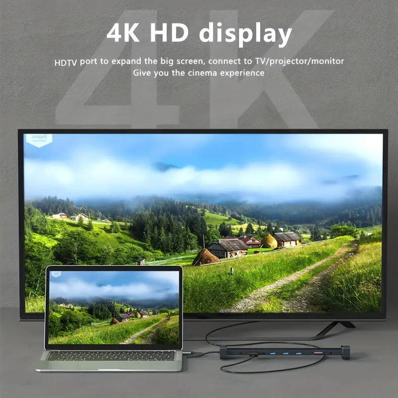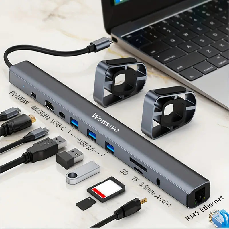 10-in-1 Triple Display USB-C Docking Station - 4K HDTV, 100W Power Delivery, RJ45 Ethernet, SD/TF Card Reader, Audio, USB 3.0 - Compatible with MacBook and Windows Laptops