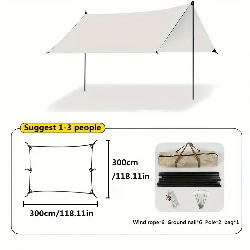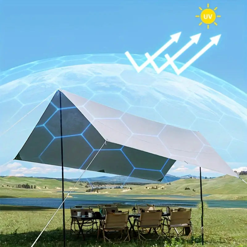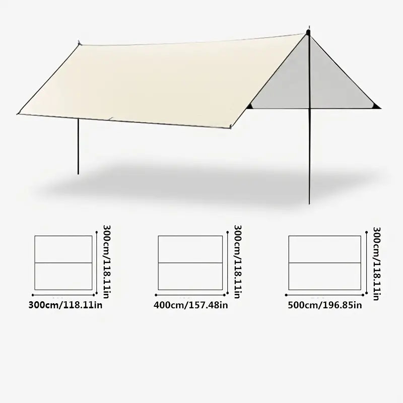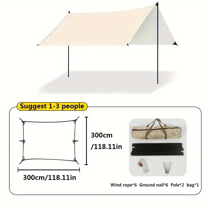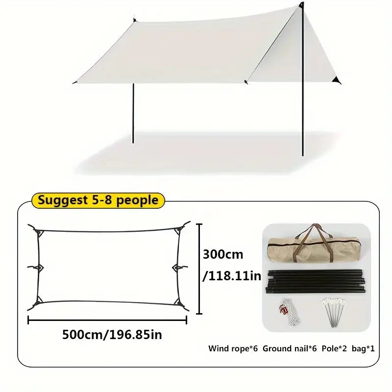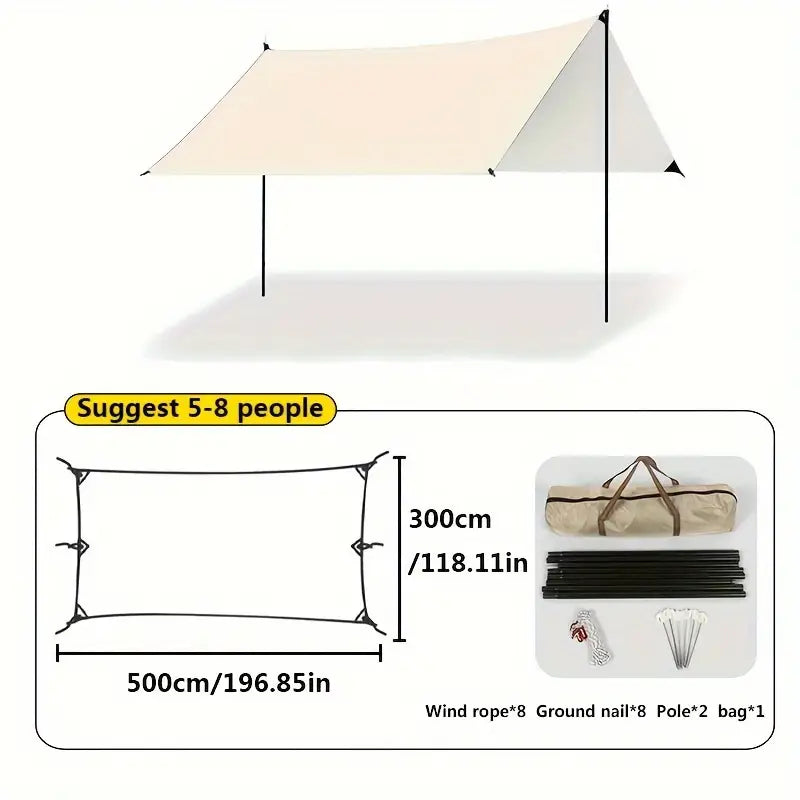 Extra Large Waterproof Camping Tarp Tent, Sun Protection Silver-Coated UV-Resistant Oxford Fabric Canopy for Picnics & Gatherings, All-Season, 8-Person Capacity, Iron Support, Solid Color - Spring, Fall, Summer Usage.