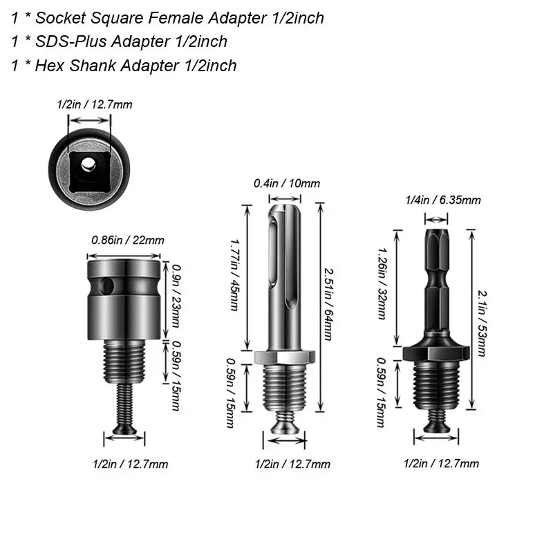 1pc/3pcs 1/2-20 UNF Quick Changer Converter, Adapters Hex For Impact Driver To Drill, SDS Plus For Impact Hammer To Drill, Socket Square Female Adapter For Impact Wrench To Drill