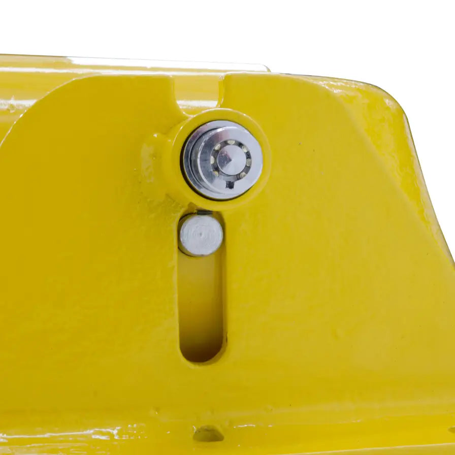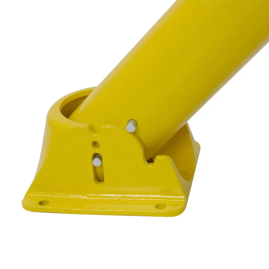 This surface mounted foldable bollard makes traffic control a simple task.. The bollard has a highly visible bright yellow powder coated surface. The steel ring welded to the top is useful for attaching a rope for crowd control.