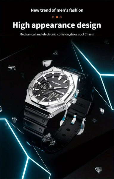 Watches FOXBOX New Mens Waterproof Double Display Wristwatch LED SILVER