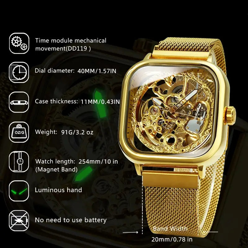 Watches Men's Fashion Casual Hollow Square Automatic Mechanical Watch