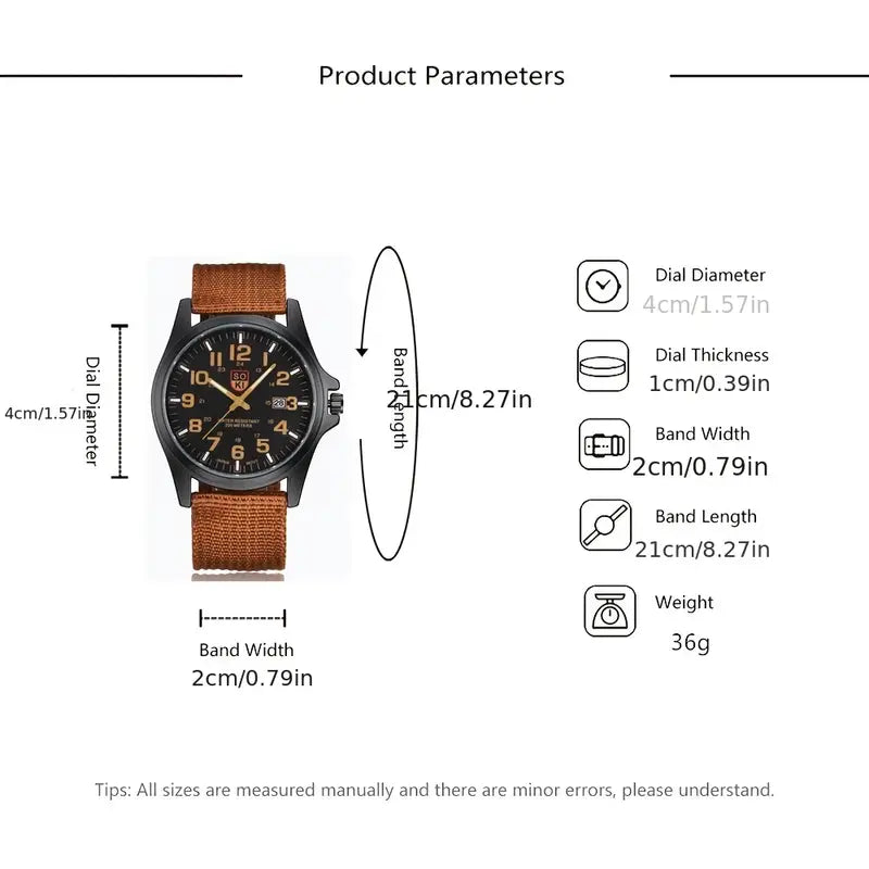 Watches Fashion Military Watch w/Braided Nylon Watch Band Brown