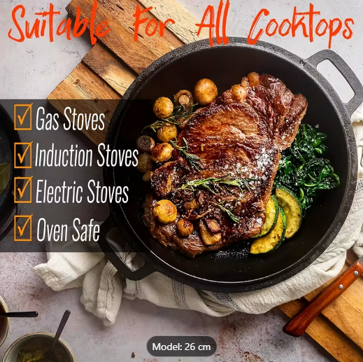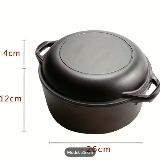 2 In 1 Cast Iron Pan Dutch Oven Set With Lid