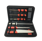 The Rural Butcher's Eight Piece Knife Set offers knives of various sizes ranging from 150 to 300 mm along with a sharpening stone. The knives are constructed from quality German steel blades and polpropylene antimicrobial handles.
