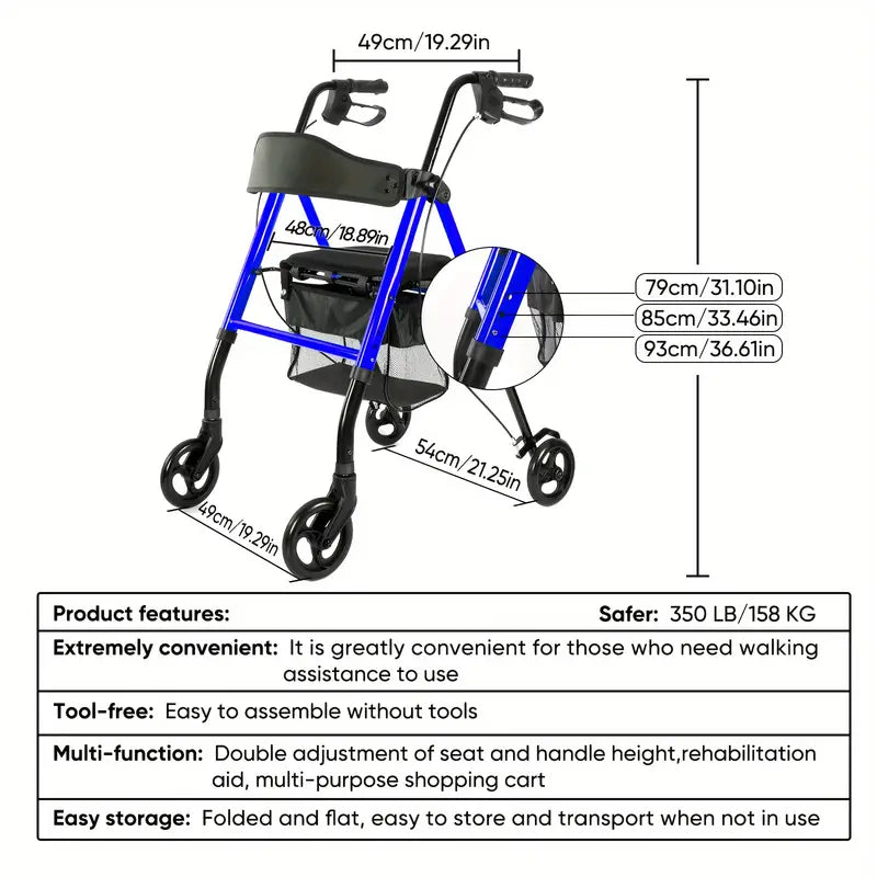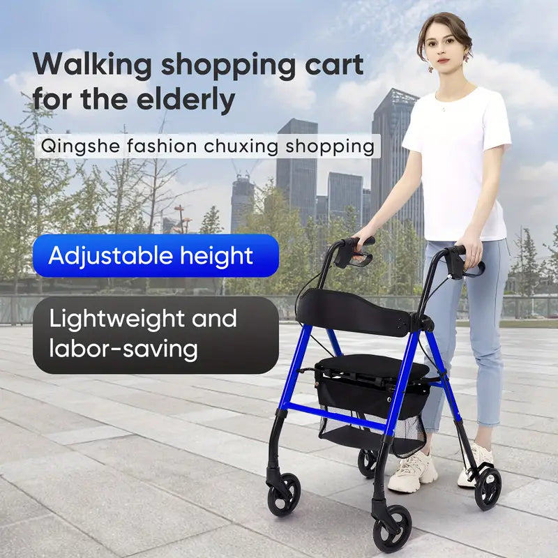 Four-Wheel Rolling Walking Aid with Shopping Cart