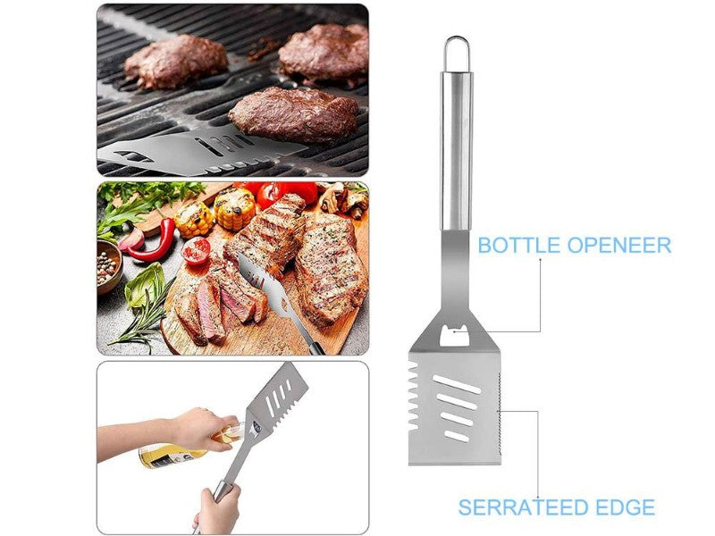 The BBQ tools set contains the general tools needed for barbecue. It is easy to carry when you prepare to barbecue outdoor or indoor. BBQ tools set let you taste the delicious food more quickly!