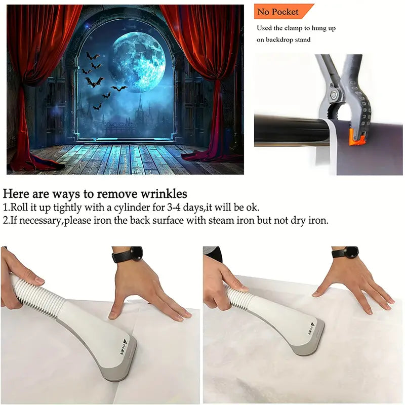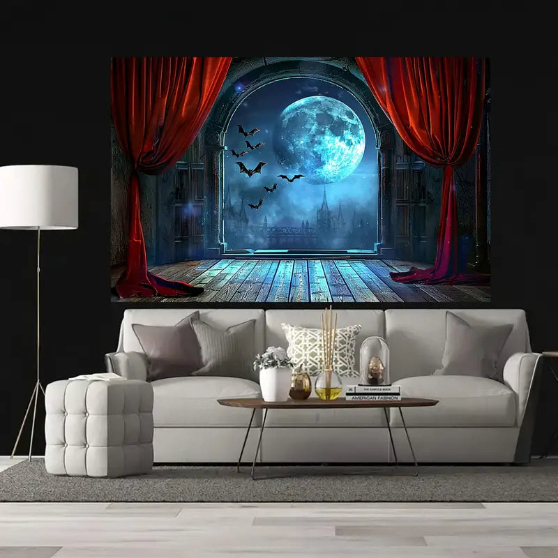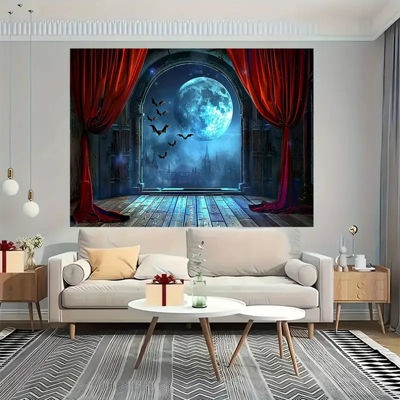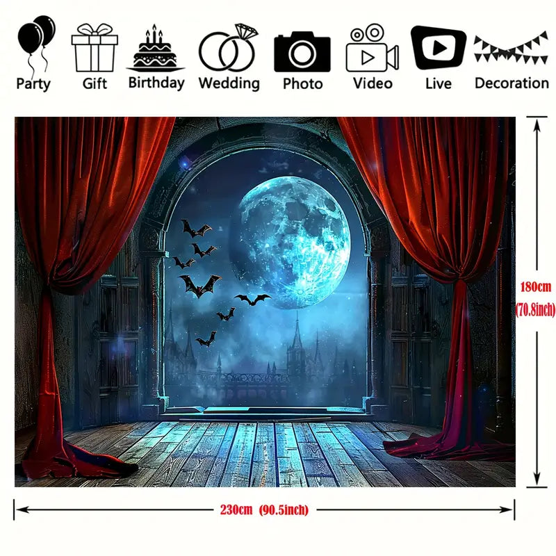 1 Piece Moonlit Gothic Castle Archway Backdrop with Flying Bats