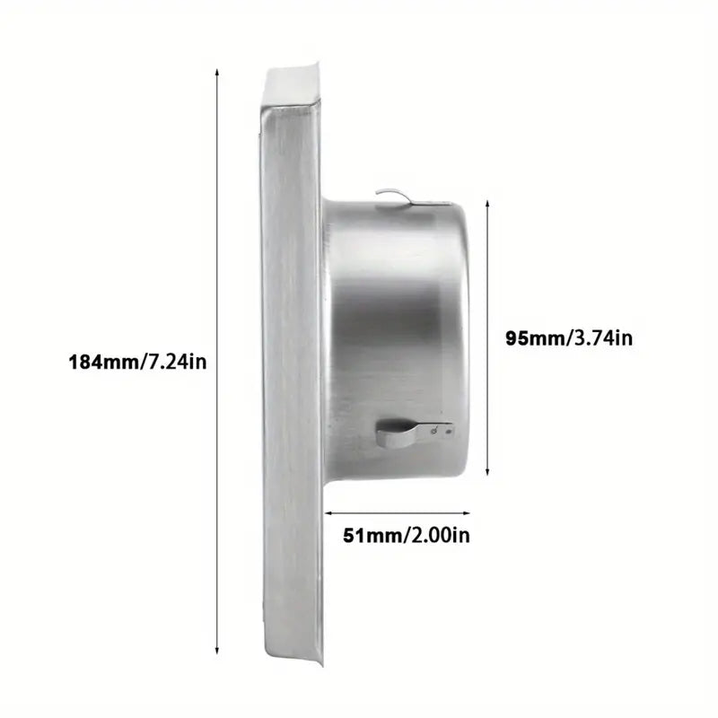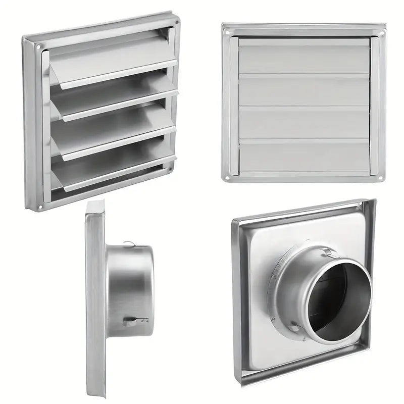 Characteristics: - This square wall vent made of stainless steel includes anti-draft gravity flaps, screws, clips, and sealing. - These stylish and long-lasting vent outlets are ideal for contemporary homes. - Crafted from durable 304 stainless steel, it is resistant to rust and corrosion. - Suitable for various uses such as tumble dryer vent pipes, bathroom vents, air conditioning units, kitchen fans, electric dryers, cooker hood extractors, conservatory wall outlets, and more.