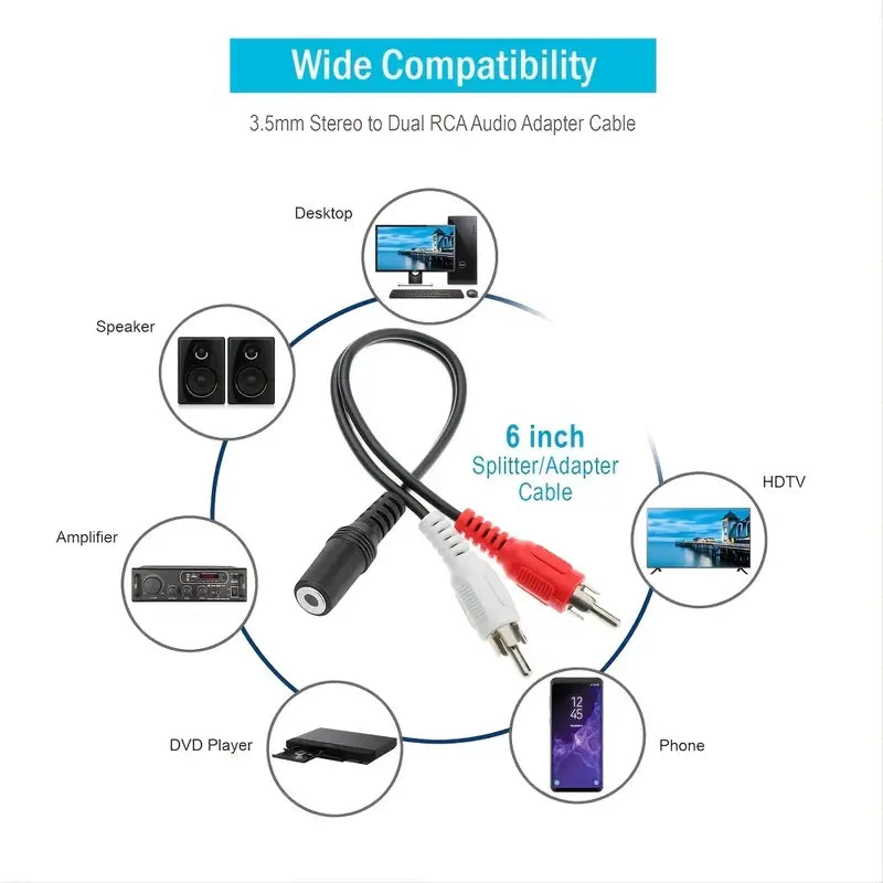 Music Wire 3.5MM Female Connector Jack Stereo Cable Y Plug To 2 RCA Male Adapter 3.5 Audio Aux Socket Headphone