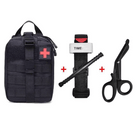 Product name: Tactical bag Weight: about 245 G Product size: 15*9*20C M Product name: Reinforced and upgraded tourniquet Product size: 3.8*95 cm Net weight: about 85G Colour: Black Function: Mainly used for hemostasis of blood vessel bleeding in limbs, which can achieve - One-handed hemostasis operation. Product name: Stainless steel gauze scissors Material: 2CR13 stainless steel Net weight: about 55G Specifications: total length 18 cm、9 cm width