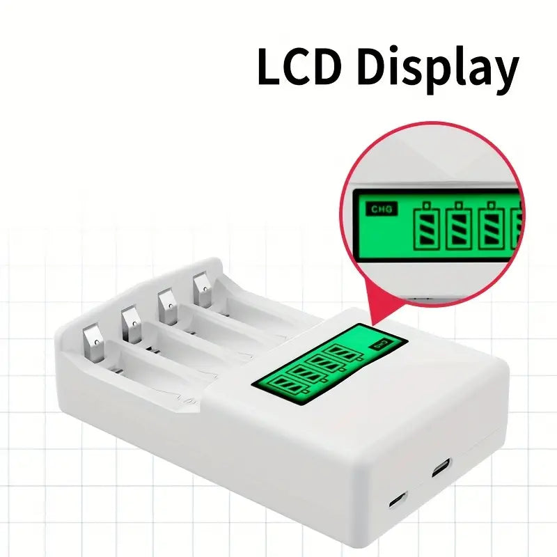 Independent 4-slot Fast Charging For AA/AAA Ni-MH Ni-Cd Rechargeable Battery Accessories,