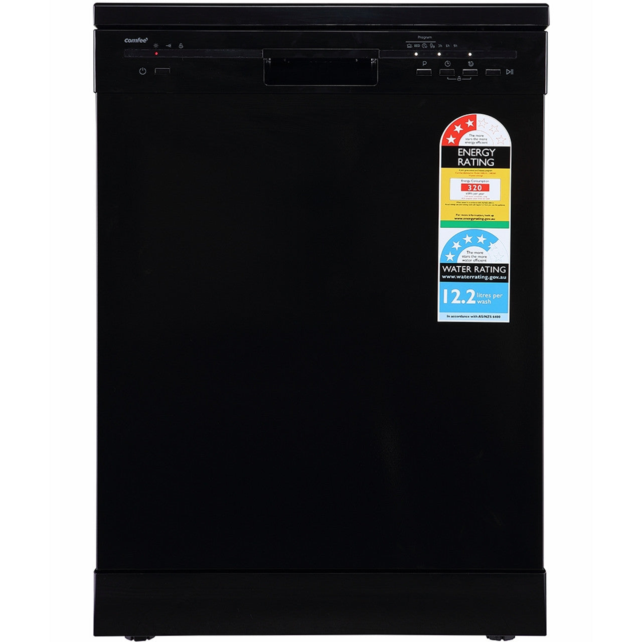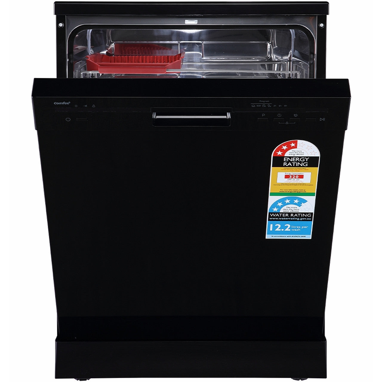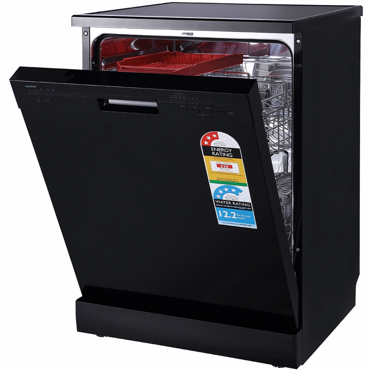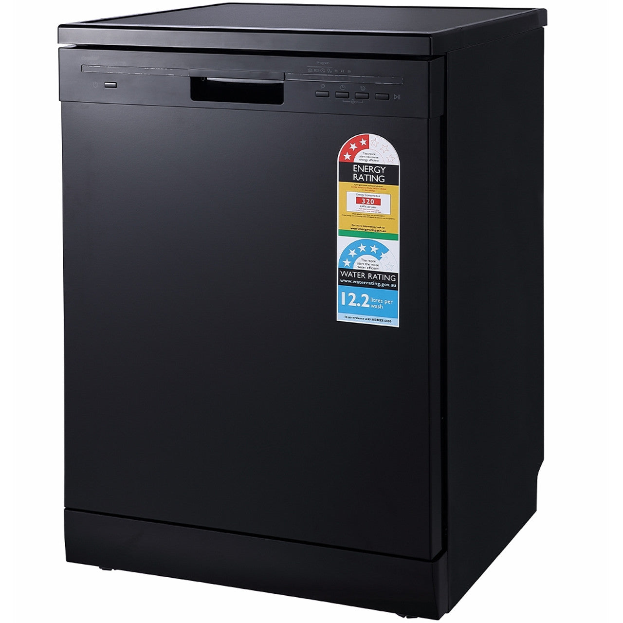This Moon freestanding dishwasher ticks all the right boxes. Stylish in black, environmentally astute, and extremely affordable. The water consumption is as low as 12L of water per load (Eco mode), achieving an impressive 4.5-star WELS rating and a 3-star energy rating.