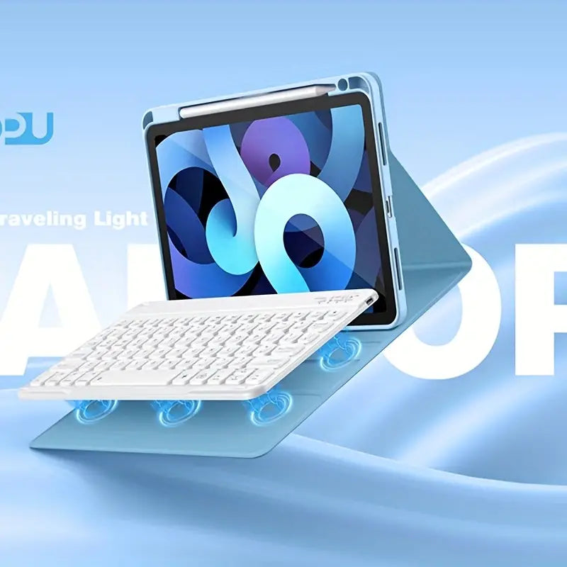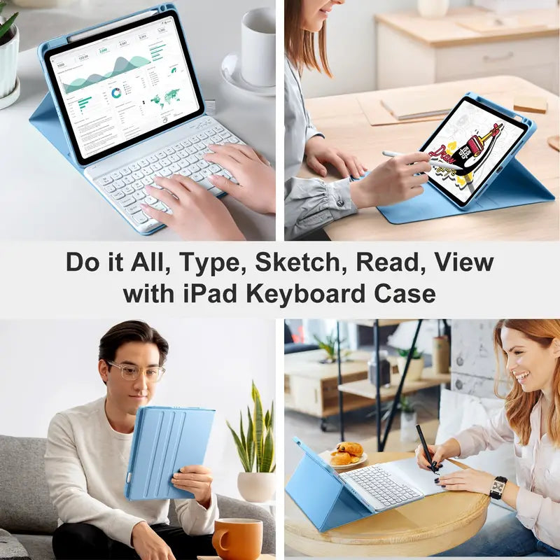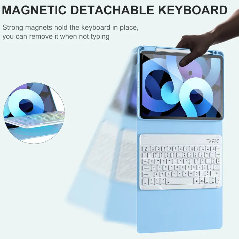7 Color Backlight Detachable Keyboard Tablet Cover With Pencil Holder For IPad Air 5th Gen 2022/iPad Air 4th Gen 2020 10.9, Sky Blue
