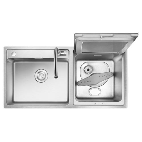 Efficient 3-function-in-1. A dishwasher, a sink, and a produce & seafood washing machine all in one product. Saves space, energy, and time.