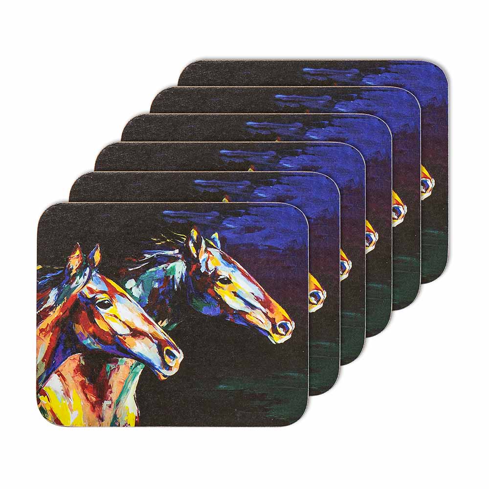Made from hardboard and cork they easily wipe clean. Each pack contains the same design and is also available in matching placemats.