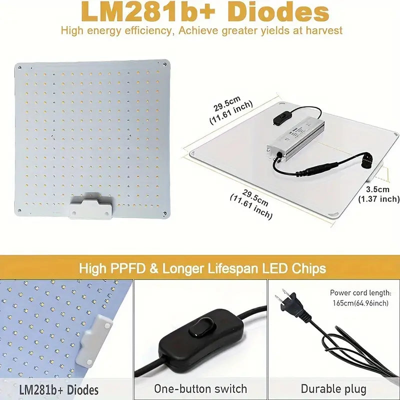 1pc LED Grow Light, Latest LED Grow Lamp With LM281B Chip, Full Specturm Led Grow Lamp High PPFD Plant Grow Light, Grow Lamp For Indoor Hydroponic Greenhouse Seeding Veg And Flower