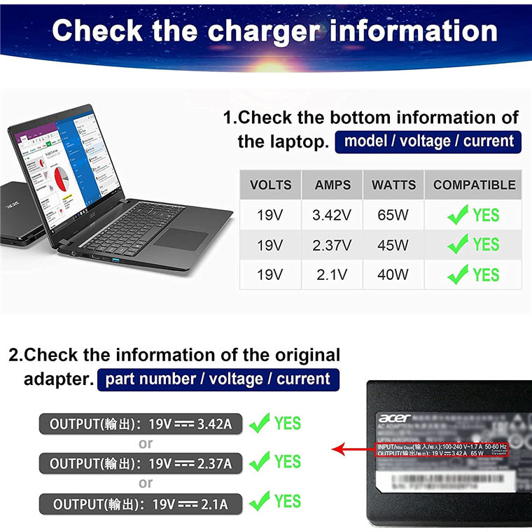 Acer Aspire Charger 3 5 E1 E3 E5 ES1 S3 V3 V5 R7 F5 M5 Series:
