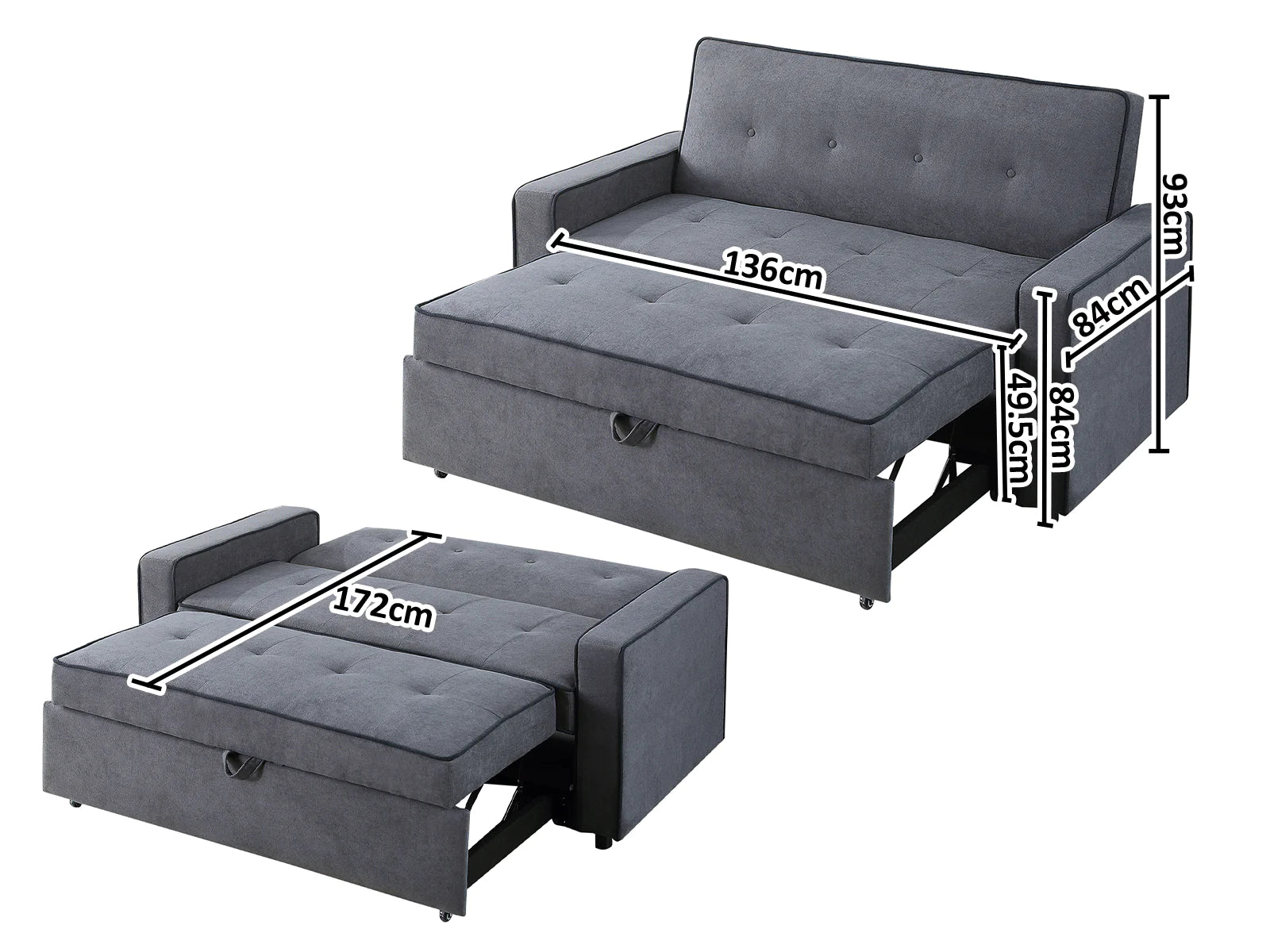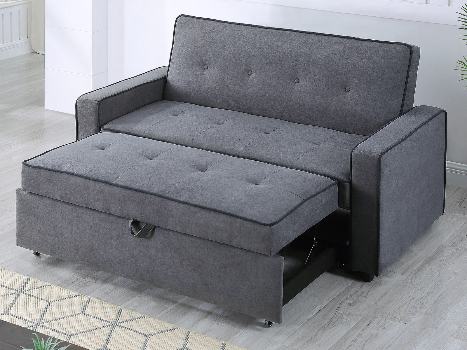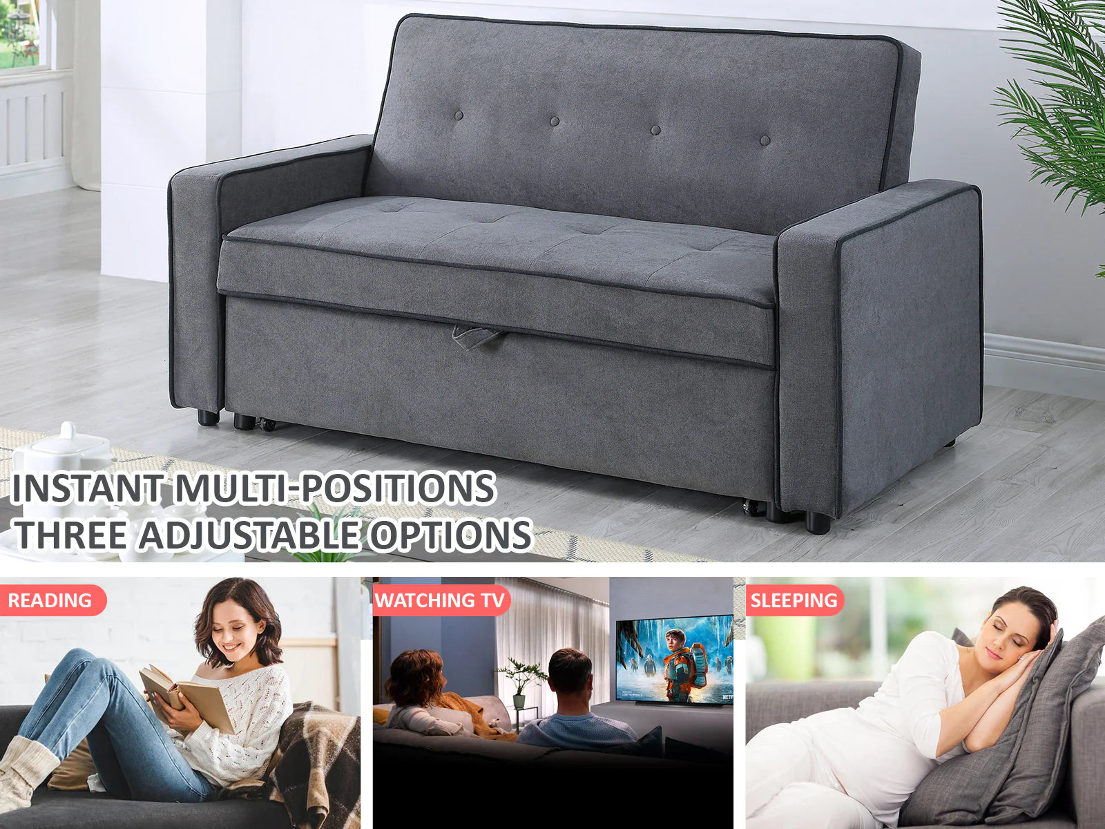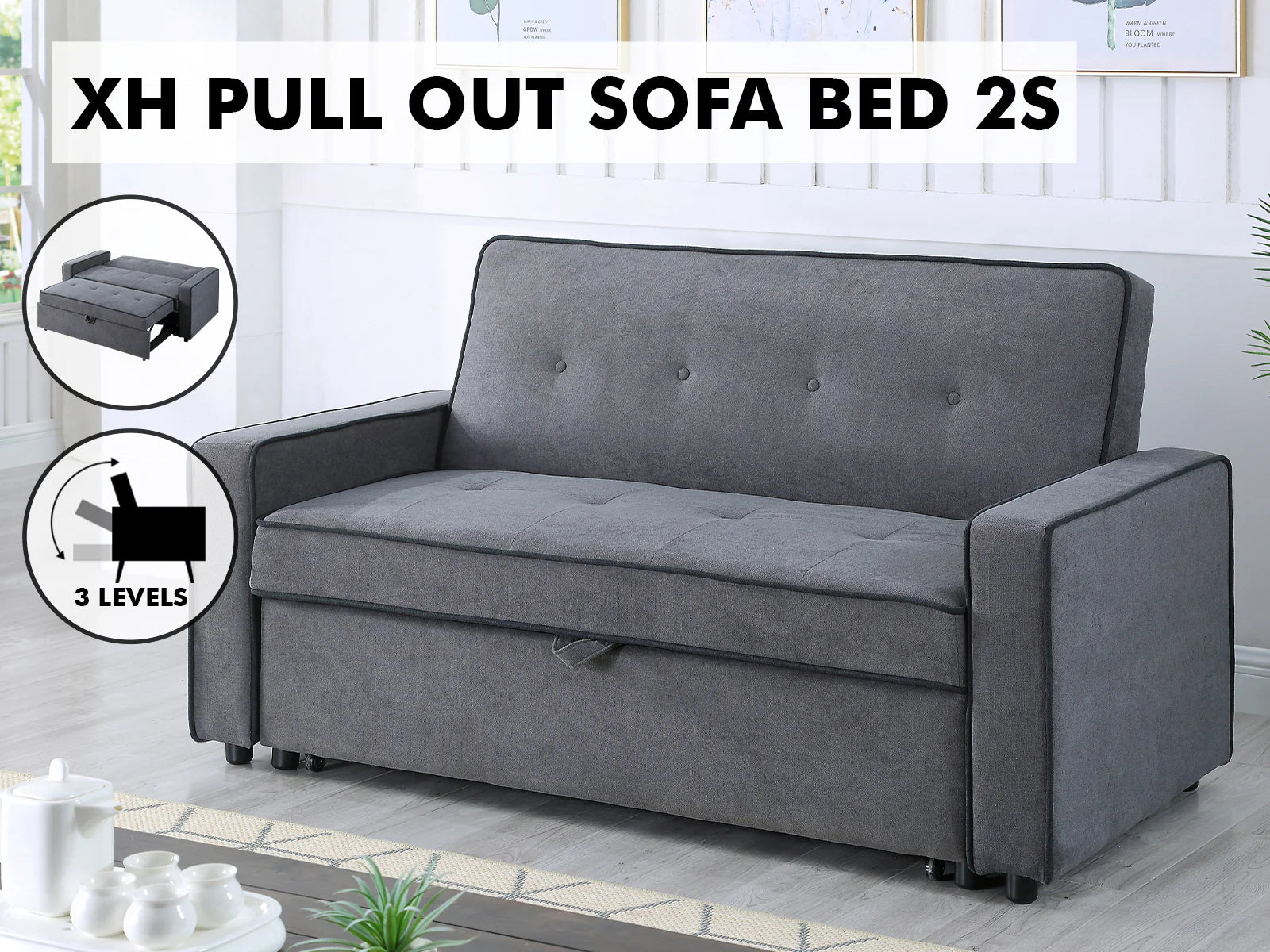 XH PULL OUT SOFA BED 2S is a high-quality multi-functional sofa/loveseat/chair that goes from comfortable seating to a chaise lounge, then a reclining chaise lounge, and then a comfortable sleeper.