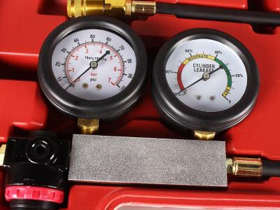Set of Engine Cylinder Leakage Tester, including one fuel pressure gauge calibrated from 0 - 100 PSI(0-7 bar), and one leak down gauge reading 0 to 100% leakage in 5% increments.