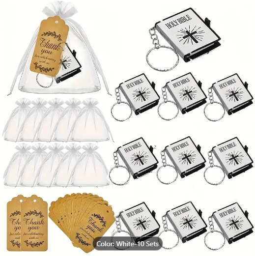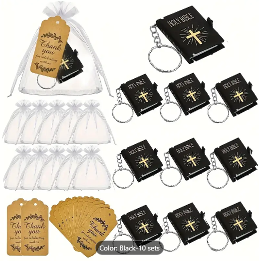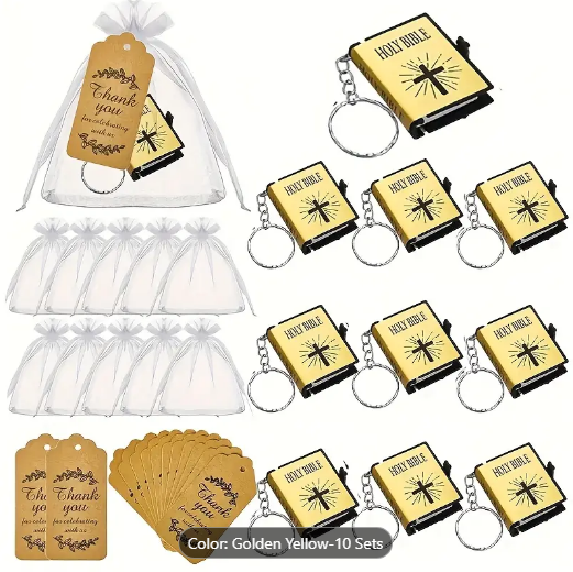 30pcs/10sets Mini Bible Keychain, includes 10pcs Keychain + 10pcs Ogen Sandbag + 10pcs Thank You Card, suitable for First Communion, Baptism Gift, Religious Gift, Eid Gift, Event Prize, Souvenir, Christmas