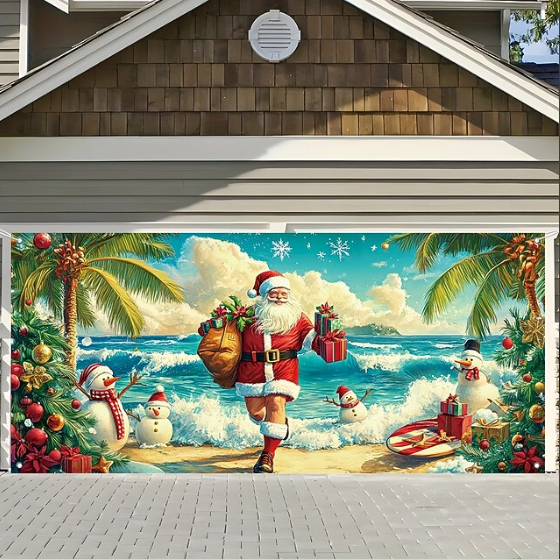 Large Tapestry Backdrop Island Santa Wall Decoration For Outdoor Garage Door/Wall Christmas Festival Celebration Decor