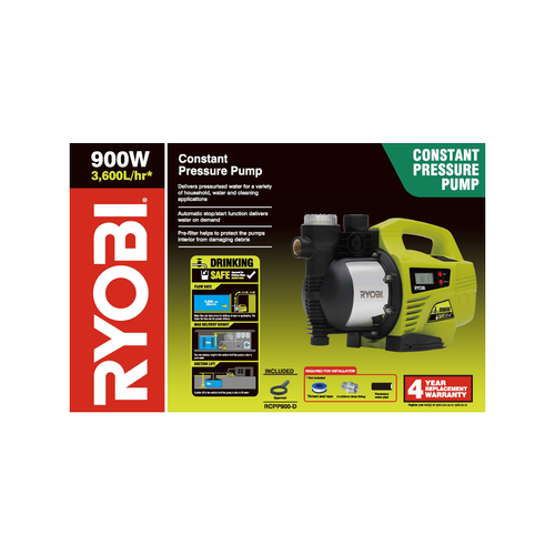 Model Name: Ryobi 900W Drinking Safe Constant Pressure Pump